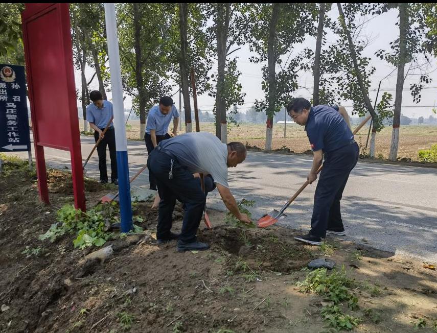 罗士喜和新蔡县领导在大马庄村委门前亲手栽种月季苗