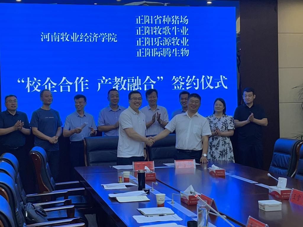宋予震与正阳种猪场、乐源牧业、正阳牧歌、际腾生物企业负责人分别签订了合作协议。