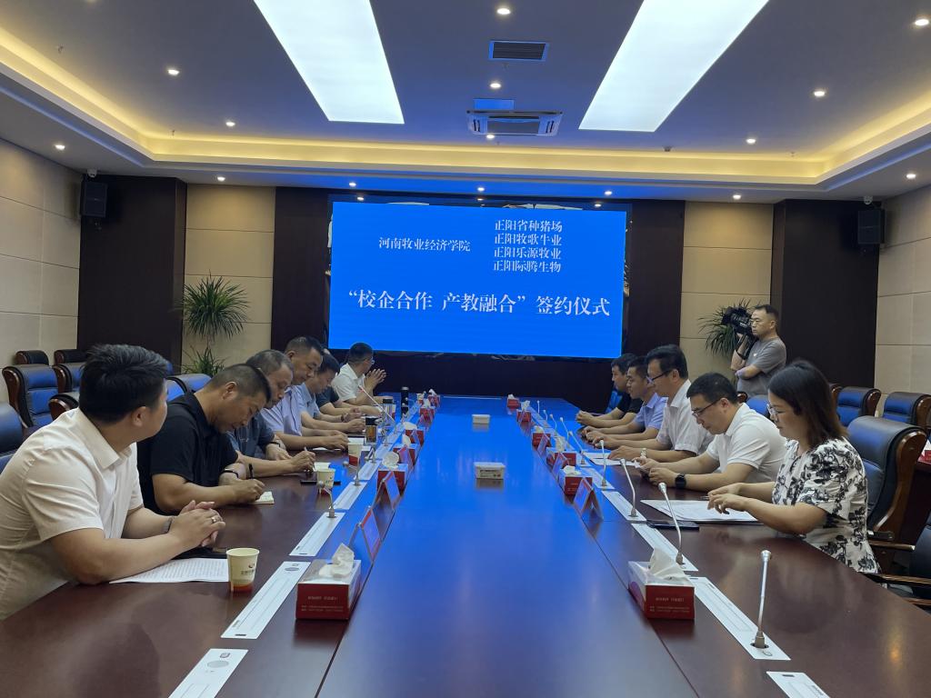 近日,副校长吴中带领动物医药学院院长宋予震、副院长吴玉臣一行到正阳县,与正阳县人民政府、相关企业代表举行“校企合作 产教融合”签约仪式。正阳县人民政府副县长汤法银、政府办主任李东升及科技工信局、畜牧中心等单位负责人参会。会议由李东升主持。