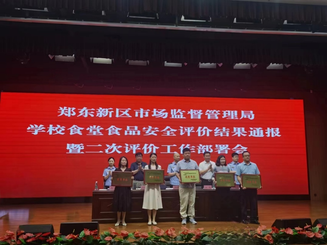 近日,从郑东新区市场监督管理局传来喜讯,在郑东新区开展的286家食堂食品安全评价工作中,完美官网龙子湖校区5个食堂以示范成绩成功通过评估,成为郑东新区唯一进入前10名次获评“优秀单位”称号的高校,并在大会上受到表彰。