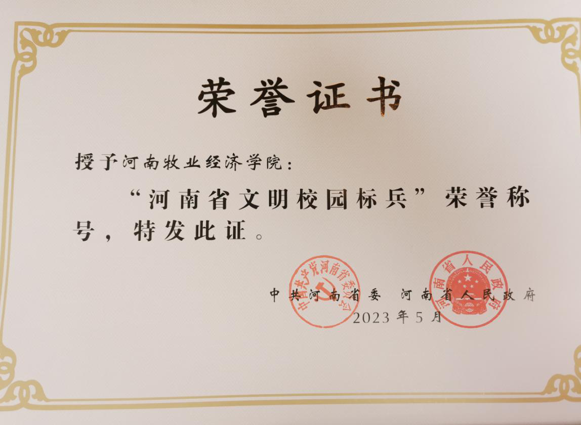日前,中共河南省委、河南省人民政府下发《关于命名新一届河南省文明城市文明村镇文明单位文明家庭的决定》(豫文[2023]50号),完美体育官方网站被授予“河南省文明校园标兵”荣誉称号。这是学校精神文明建设工作取得的标志性成果。