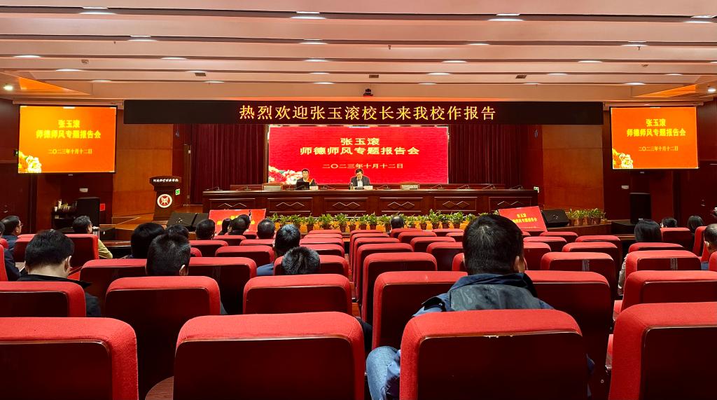 为高质量推进教师思想政治工作和师德师风建设,落实立德树人根本任务,10月12日下午,完美官网在图书馆一楼报告厅举办师德师风专题报告会,特邀“时代楷模”张玉滚作《不忘立德树人初心 牢记为党育人、为国育才使命》专题报告。机关党员教师、2023年新进教师及新转岗教师现场聆听了报告,各学院及其他部门教职工在视频分会场收看会议视频直播,会议由校党委副书记李俊杰主持。