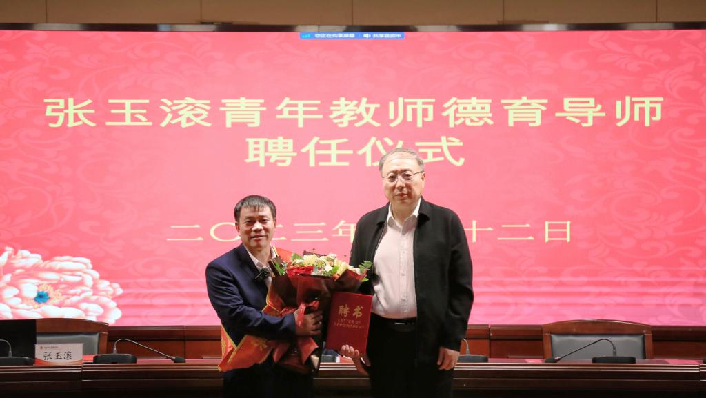 报告会后,学校聘任张玉滚校长为完美官网青年教师德育导师,校党委书记穆瑞杰为张玉滚颁发聘书并合影留念。