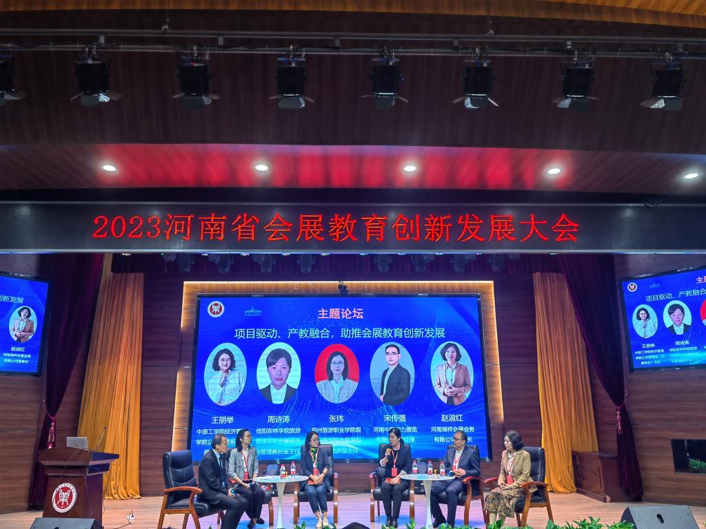 在随后的主题论坛环节,中原工学院经济管理学院公共关系(会展专业)主任王朋举博士、信阳农林学院旅游管理学院会展教研室主任周诗涛副教授、郑州旅游职业学院现代服务学院会展教研室主任张玮老师、河南中展动力展览有限公司总经理宋传强、河南瑞祥会展会务有限公司董事长赵淑红围绕项目驱动、产教融合、校企合作、实习就业、师资培养、项目开发等展开校企对话和深度研讨。