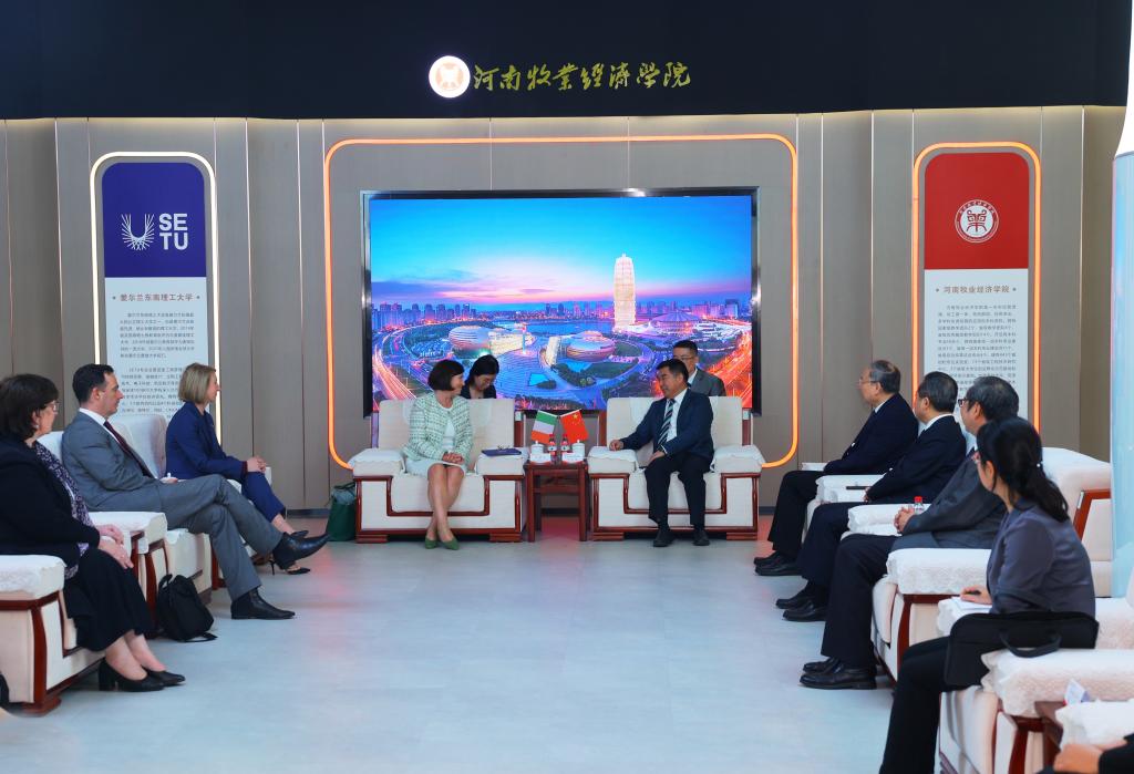 安黛文大使对卡洛理工国际学院获批设立并顺利运行表示祝贺,对这次河南之行表达了期待之情,对卡洛理工国际学院的建设感到非常高兴。安黛文介绍了爱尔兰高等教育情况,表达了致力于推动和促进中爱两国的教育合作的信心。目前爱尔兰与中国高校合作的9家中外合作办学机构中有2家落户河南,完美体育官方网站卡洛理工国际学院是中爱教育合作的一个优秀成果。她希望爱尔兰东南理工大学持续为卡洛理工国际学院提供坚强有力的教育资源支持,两校齐心协力办出高质量的中外合作办学机构;希望两校加强多方面的交流合作,共同分享教育与科研资源,促进两校共同发展;希望河南的学生能够踊跃到爱尔兰留学,利用爱尔兰丰富优质的教育资源和全球领先的新技术产业资源提升自己,成为优秀的国际化人才。