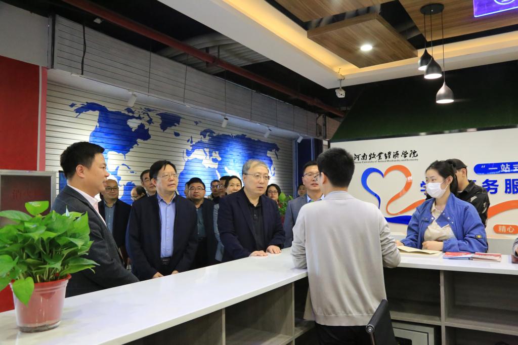 揭牌仪式后,穆瑞杰等校领导在党委学工部和龙子湖校区“一站式”学生社区综合管理服务办公室负责同志陪同下,参观了学生事务服务中心。(杨梅/文 聂丹/图)