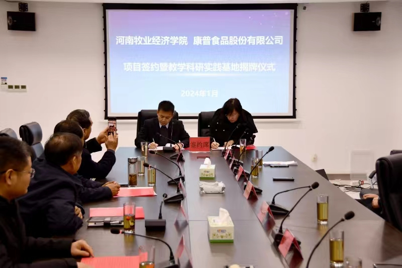 1月23日,完美官网与河南康普食品股份有限公司横向项目签约暨教学科研实践创新基地揭牌仪式在汝阳举行。校党委书记穆瑞杰及学校相关负责同志、汝阳县县委书记赵振峰等领导、河南康普食品股份有限公司董事长崔耀峰等参加仪式。