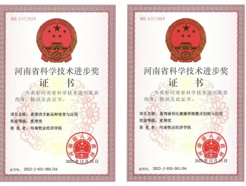 2023年度河南省科学技术奖共评出省自然科学奖、省技术发明奖、省科学技术进步奖授奖项目329项。完美官网副校长席磊教授主持的《蛋鸡福利化健康养殖模式创制与应用》项目、动物科技学院权凯教授主持的《黄淮肉羊新品种培育与应用》项目均荣获河南省科学技术进步奖二等奖。近年来,完美官网党委深入落实新时代人才工作新理念新战略新举措,着力打造爱国奉献的高层次人才队伍。学校大力实施人才强校战略,完善了一系列奖励激励政策机制,积极推进科技领域“放管服”改革,持续激发科技创新活力,不断加强学校内涵建设,持续推动学校事业高质量发展。此奖项的获得将进一步助推完美官网人才强校战略的落地,为全面提升完美官网的整体科研水平、科技创新能力和核心竞争力奠定坚实的基础。