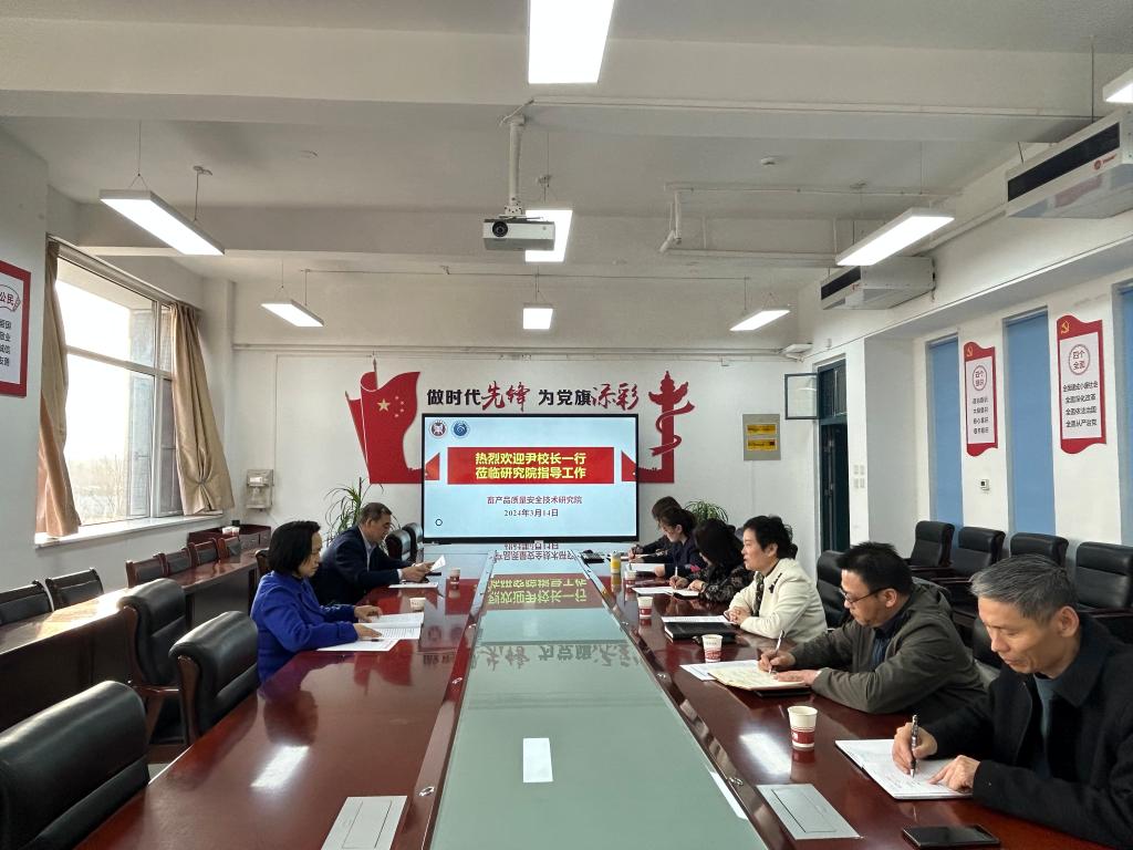 3月14日,校长尹新明教授莅临畜产品质量安全技术研究院调研指导工作,校办主任和研究院全体教师参加了调研座谈。