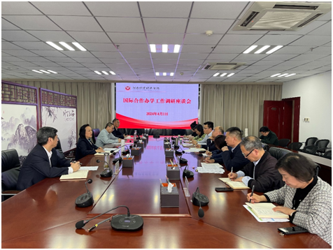 4月1日下午,校长尹新明在图书馆841会议室主持召开国际合作办学工作调研座谈会,副校长黄良杰、岳彩军及相关职能部门、学院负责同志参加调研座谈。