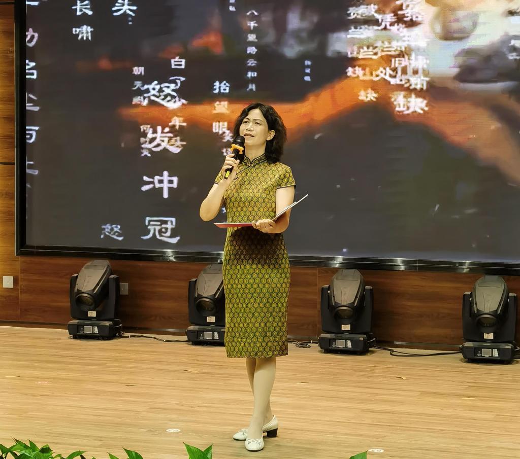 “怒发冲冠,凭栏处、潇潇雨歇......”图书馆李芳春老师的朗诵《满江红·写怀》,展现了这首词中蕴含磅礴的气势和激昂的爱国情感,使在场的每一个人都感受到了强烈的爱国主义情怀。(秦淼 文/图)