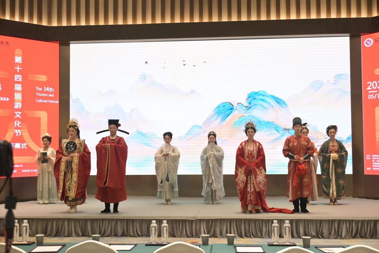 开幕式上,惊艳全场的唐、宋服饰走秀、特色专业的郑州主题讲解、曼妙轻盈的上春山舞蹈以及行云流水的茶艺表演将现场的气氛推向高潮。节目不但充分展示旅游学院大学生朝气蓬勃的精神风貌及扎实的专业素养,同时也展现了旅游文化的独特魅力,给现场的嘉宾留下了深刻的印象。