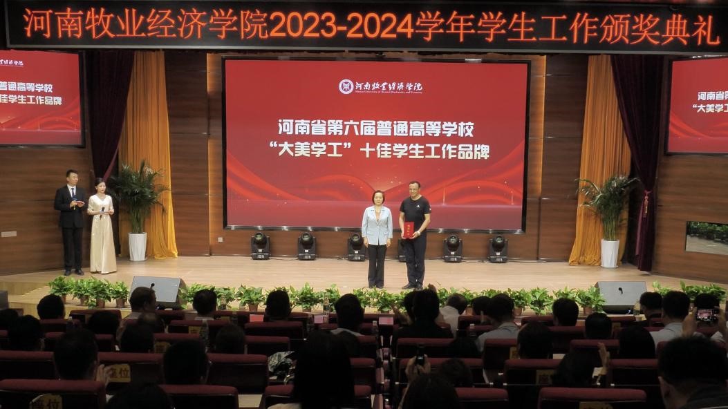 校长尹新明为河南省“大美学工”十佳学生工作品牌获奖单位颁奖