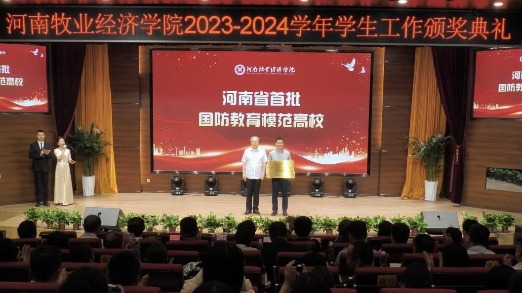 校党委书记穆瑞杰为河南省首批国防教育模范高校获奖单位颁奖