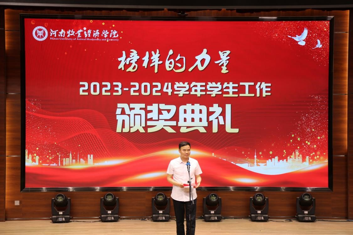为深入学习贯彻习近平新时代中国特色社会主义思想,积极落实习近平总书记对学校思政课建设作出的重要指示,紧紧围绕立德树人根本任务,充分发挥先进榜样和标杆典型的引领示范、激励带动作用,以优良的校风学风促进学生全面发展、成长成才,5月16日下午,学校2023-2024学年学生工作颁奖典礼在龙子湖校区一号教学楼合100隆重举行。校党委书记穆瑞杰,校长尹新明,校党委副书记杨志清、姚毅,副校长席磊、边传周出席活动。党委办公室、党委宣传部、院长办公室、学生工作各职能部门负责同志,各学院党委书记、副书记,团委书记(学工办主任)、全体辅导员老师以及学生代表现场观看了颁奖典礼,全校师生通过网络直播平台观看了活动实况。