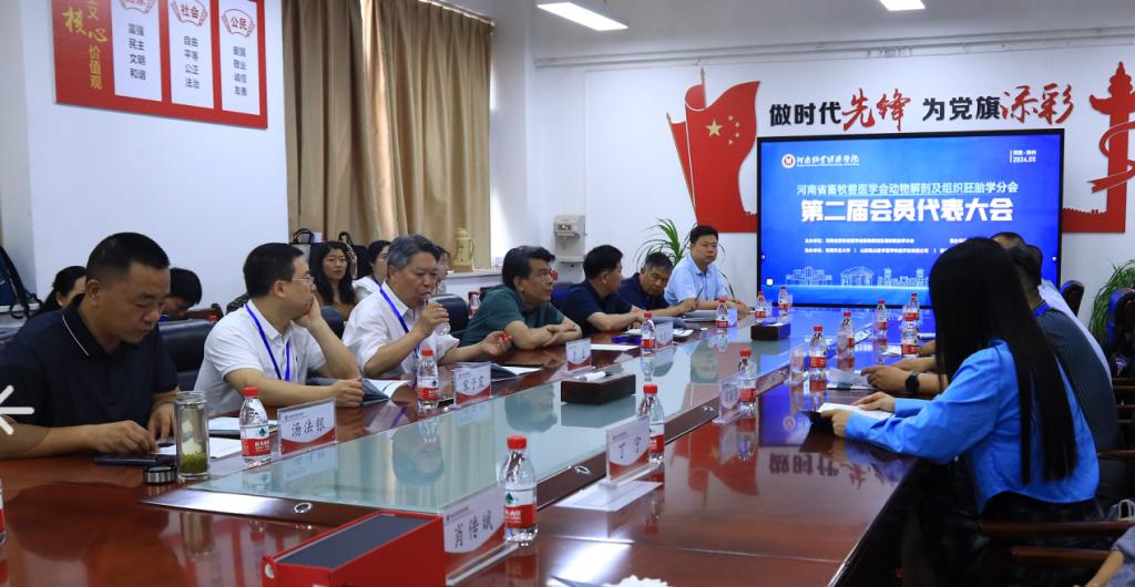 近日,河南省畜牧兽医学会动物解剖学及组织胚胎学分会第二届会员代表大会在完美官网龙子湖校区善知楼A229会议室召开,本次会议由动物医药学院承办。完美官网副校长杨国宇出席会议,教务处、动物医药学院负责同志及40余位兄弟院校专家、相关企业代表参会。会议由动物医药学院副院长汤法银主持。