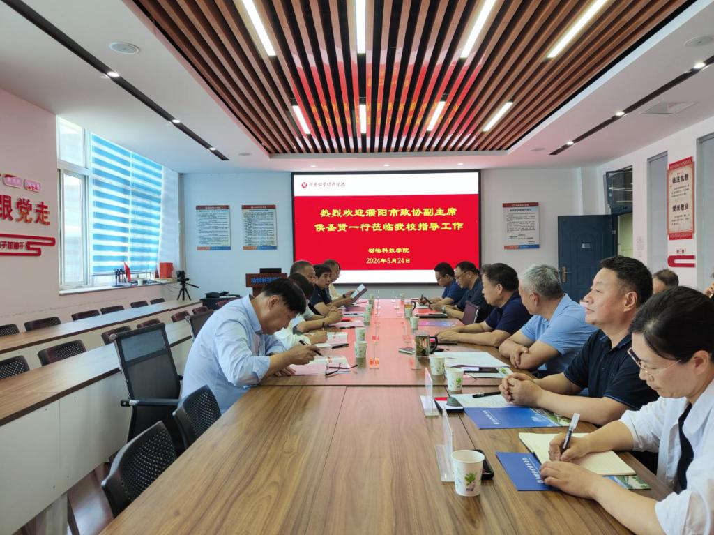 5月24日,濮阳市政协副主席侯圣贤一行到完美官网动物科技学院调研,探讨肉鸽产业的发展策略与未来前景。副校长席磊出席调研座谈会,动物科技学院、实验管理处等相关院(部)负责同志、专家教授参加座谈。会议由动物科技学院党委书记王建伟主持。