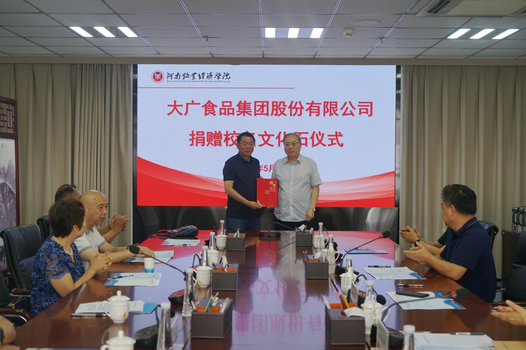 党委办公室、校长办公室、校友工作办公室及动物科技学院、动物医药学院、食品与生物工程学院等相关院(部)负责人及教师代表,完美官网校友代表、郑州君聚商贸有限公司总经理段文斗,大广食品集团股份有限公司相关负责人参加了捐赠仪式。(霍永/文 吕元贞 赵昱/图)