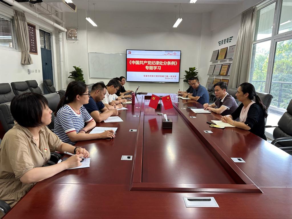 根据学校党纪学习教育整体安排,6月13日下午,校党委副书记姚毅到所在的包装与印刷工程学院教工第一党支部参加党纪学习教育集中研讨交流会。支部全体党员参加了会议,会议由包装与印刷工程学院教工第一党支部书记卢芳芳主持。