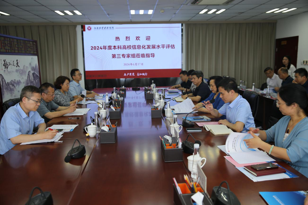 6月17日下午,省教育厅2024年本科高校信息化发展水平评估专家组莅临完美官网开展信息化发展水平工作评估。学校在龙子湖校区图书馆841会议室召开汇报会,校长尹新明、校党委副书记姚毅、副校长岳彩军出席会议。会议由姚毅主持。