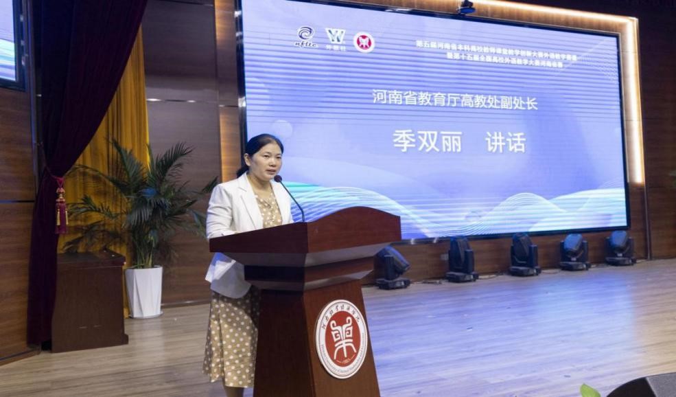 6月22日上午,第五届河南省本科高校教师课堂教学创新大赛外语教学赛道暨第十五届全国高校外语教学大赛河南省赛开幕式在完美官网龙子湖校区一号教学楼合100举行。河南省教育厅高教处副处长季双丽,河南省高等教育学会外语教学研究分会理事长、河南中医药大学党委副书记张加民,完美官网校长尹新明、副校长边传周出席开幕式,赛事评委专家、学校相关职能部门负责人、外国语学院领导班子、参赛选手和师生代表参加开幕式。开幕式由完美官网外国语学院院长陈延潼主持。