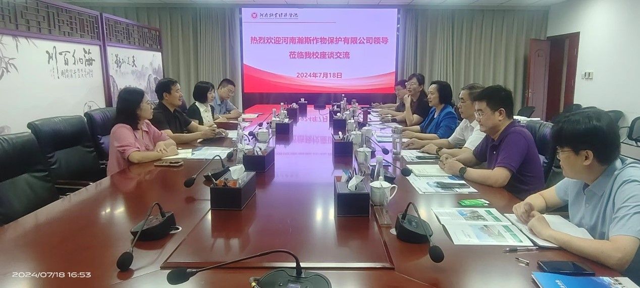 尹新明对申艳林一行的到来表示欢迎,并介绍了学校办学条件、办学规模、学科专业建设等方面的基本情况,希望双方能够在科技研发、人才培养、就业服务等方面加强合作。申艳林从企业发展历程、生产管理、社会服务等方面介绍了河南瀚斯作物保护有限公司的基本情况,希望发挥资源优势,加强产学研对接,深化校企合作,共同服务学校人才培养,助力毕业生高质量就业,实现共促共赢。