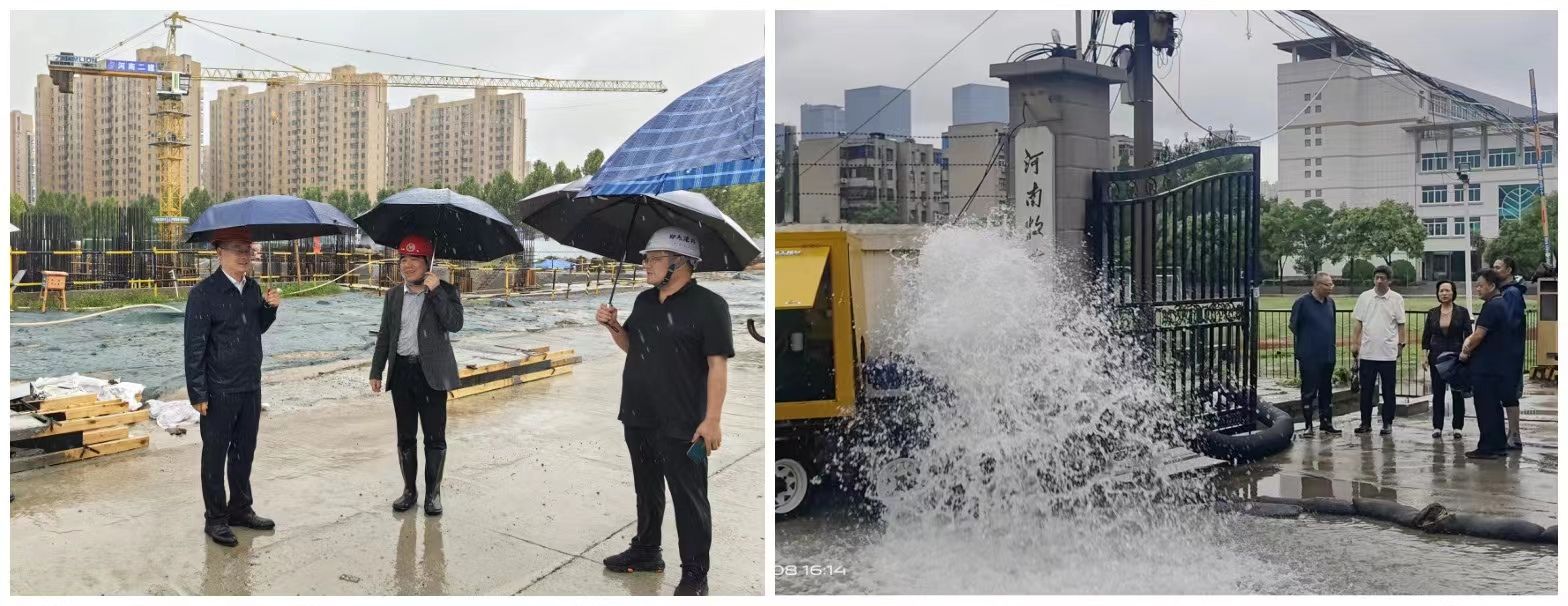 连日来,郑州市遭遇连续强降雨,累积雨量大。为消除安全隐患,确保安全度汛,7月8日下午,校党委书记刘志伟、校长尹新明带队深入三校区,检查指导防汛应急处置工作。副校长黄良杰、席磊、岳彩军及相关职能部门负责人陪同检查。