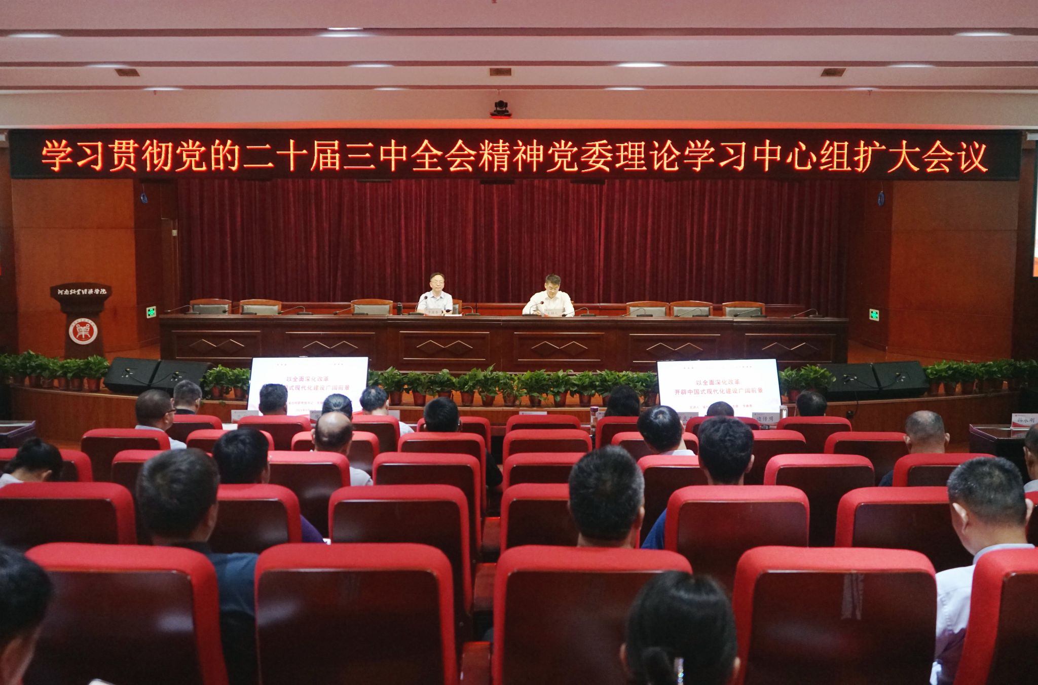 8月27日下午,学校在龙子湖校区图书馆1楼报告厅召开校党委理论学习中心组学习扩大会议,特邀省委宣讲团成员、省社会科学界联合会党组书记、主席李庚香来校作党的二十届三中全会精神专题辅导报告。校党委理论学习中心组成员、全校处级干部参加会议。会议由校党委书记刘志伟主持。