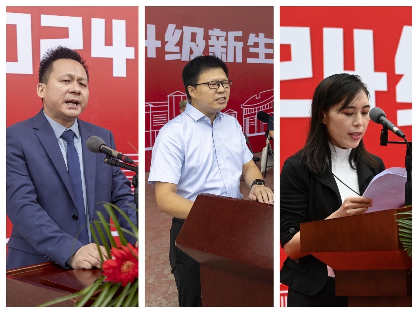 开学典礼暨军训动员大会上,教师代表外国语学院院长陈延潼、工商管理学院副院长何丽娜、能源与智能工程学院党委副书记党美珠,在校生代表食品与生物工程学院(酒业学院)李松男、信息工程学院(软件学院)宋刘阳、能源与智能工程学院郭嘉垚,新生家长代表崔俊权、王杰、谢春瑞分别发言。