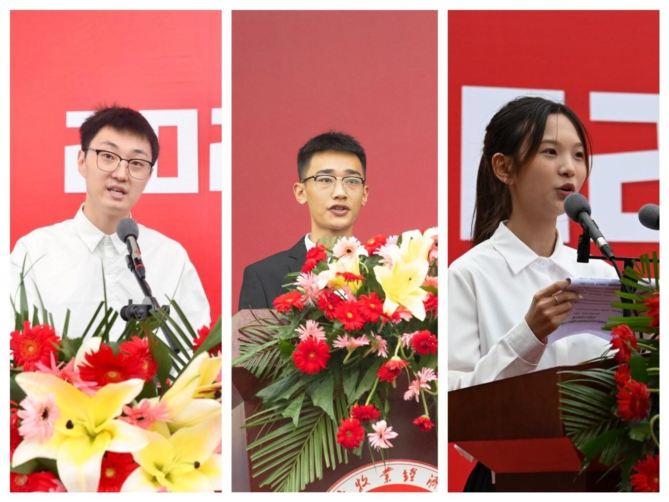 “我将践行‘请党放心,强国有我’的庄严承诺,秉承‘尚严崇实 善知敏行’的校训精神,勤奋学习、砥砺品格,崇尚科学、追求真理,团结协作、奋发图强,努力成为全面发展的高素质应用型人才和担当民族复兴重任的时代栋梁!”动物医药学院崔文宣、金融与会计学院王雨菲、信息工程学院(软件学院)薛婧作为新生代表分别发言,并带领全体新生郑重宣誓。