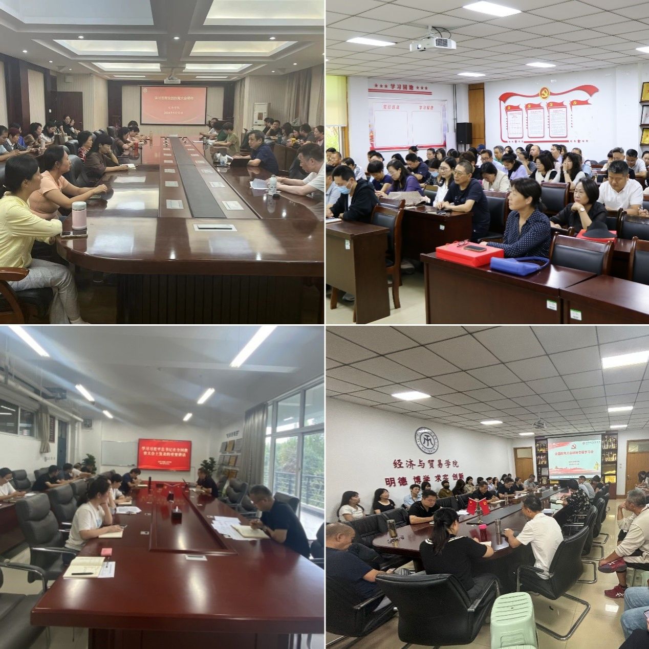 文法学院、工商管理学院、包装与印刷工程学院、经济与贸易学院等学院通过全体教职工大会,集中学习习近平总书记在全国教育大会上的重要讲话精神。文法学院党委书记胡红林表示,全体教师要坚持不懈用习近平新时代中国特色社会主义思想铸魂育人,切实将全国教育大会精神落实到实际工作中去,不断探索和创新教学方法,在立德树人上作出新贡献。经济与贸易学院党委书记张松刚强调,习近平总书记的讲话为我们大力弘扬践行教育家精神,建成教育强国提供了根本遵循,希望全体教师坚定理想信念,以教育家精神为指引,涵养高尚师德师风,努力提升专业素养。动物医药学院党委副书记汪洋表示,全国教育大会的召开,为新时代教育事业发展指明了方向。我们要始终牢记为党育人、为国育才的初心使命,以更高的政治站位、更宽的战略视野、更深的教育情怀,投入到学上管理工作中。马克思主义学院教师高湾湾说,作为一名高校思政课教师,我们应当主动承担教育现代化新征程中培养担当民族复兴大任的时代新人的崇高使命,坚持不懈用习近平新时代中国特色社会主义思想铸魂育人,在强国建设道路上贡献自己的一份力量。外国语学院辅导员秦梓龙说,作为高校思想政治教育工作者,我要牢记习近平总书记的鼓励嘱托,紧紧围绕立德树人根本任务,大力弘扬教育家精神,注重学生全面发展。