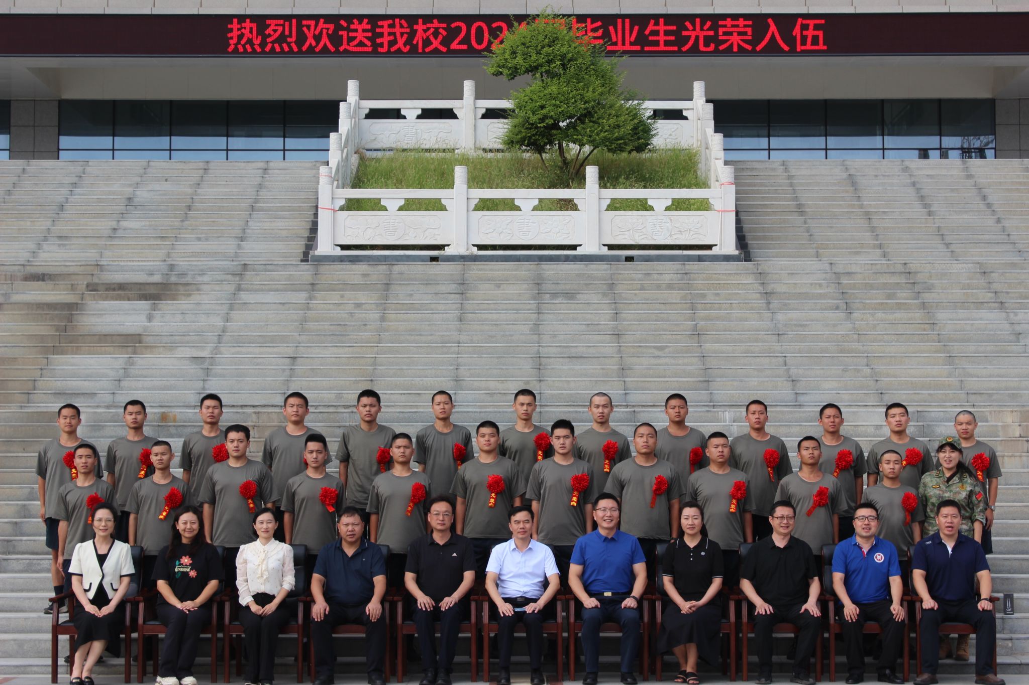 会上,郝景昊宣读了学校2024年下半年定兵名单。入伍学生代表、信息工程学院(软件学院)2022级软件07班代宇恒同学作了发言。会后,与会领导与入伍学生在图书馆南门合影留念。