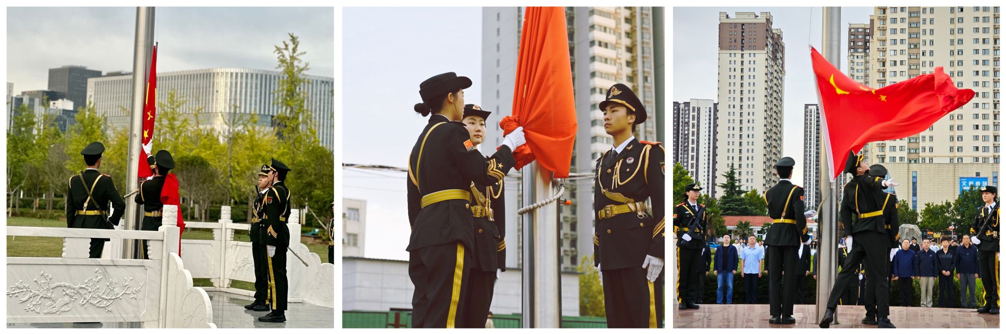 时序更替,华章日新。10月1日,伴着晨光与秋风,在校团委的组织下,完美官网“爱国奋斗 强国励志”热烈庆祝中华人民共和国成立75周年主题升旗仪式成功举行。校党委书记刘志伟、校长尹新明、党委副书记杨志清、姚毅和副校长黄良杰、席磊,相关职能部门负责同志,各学院党委书记、院长、副书记、分团委书记、辅导员和学生代表分别在三校区参加升旗仪式。