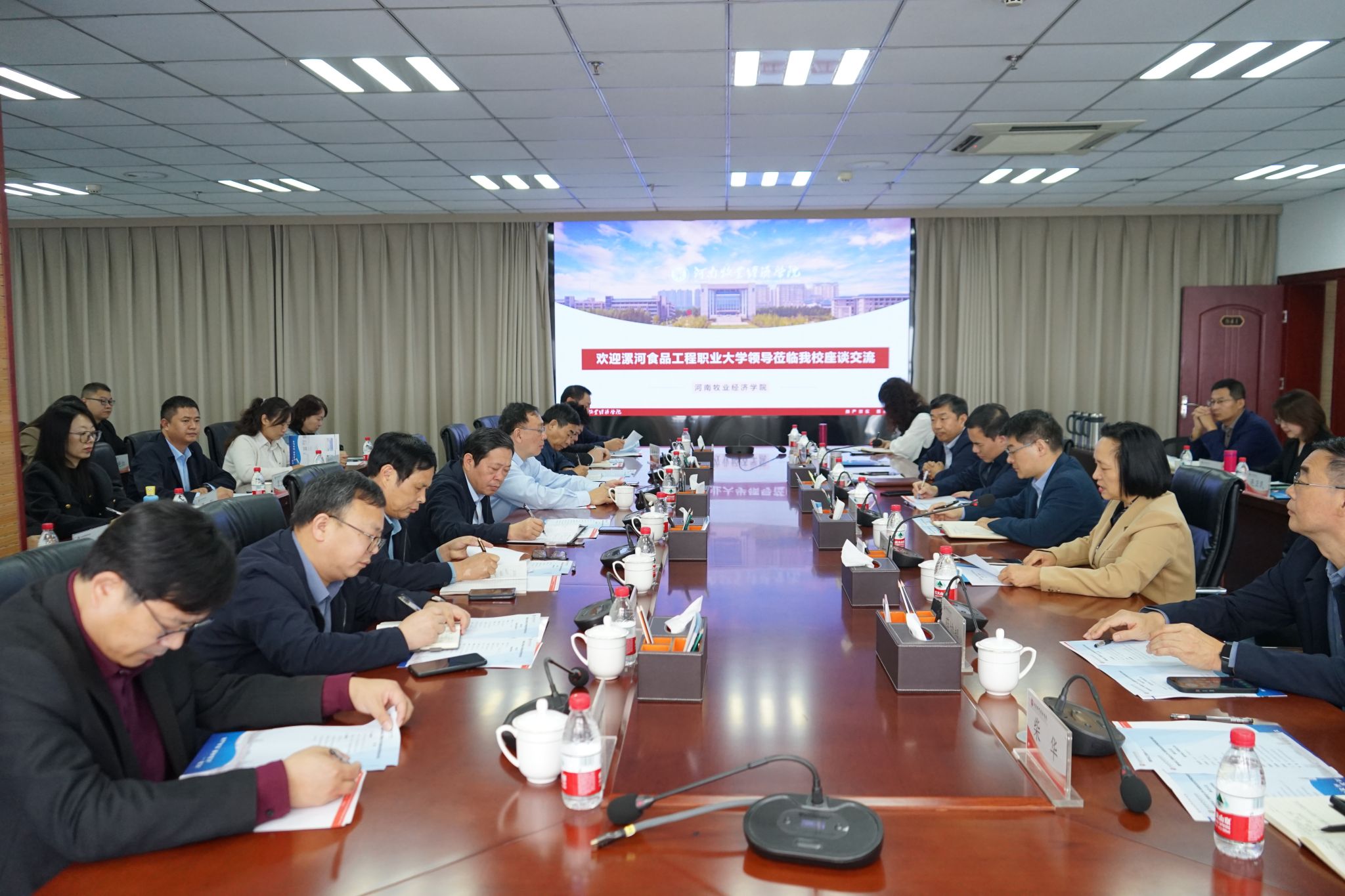 10月29日上午,完美官网1980级校友、漯河食品工程职业大学创办人、党委副书记詹跃勇,校长俞海洛等一行到完美官网考察交流。校党委书记刘志伟、校长尹新明、党委副书记姚毅出席座谈会。会议由副校长边传周主持。