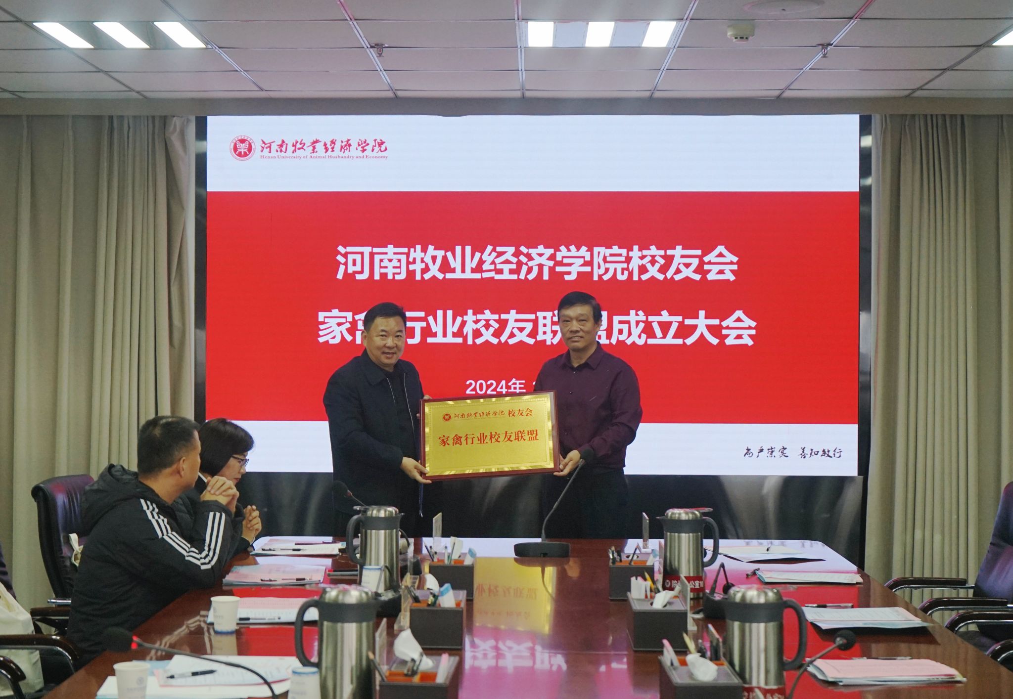 会议审议并通过了《完美体育官方网站校友会家禽行业校友联盟章程》,选举产生了第一届理事会理事;1993级校友、正大集团中国区农牧企业副董事长(河南区总裁)王鸿章当选联盟理事长。学校校友会会长杨宝进为联盟授牌。
