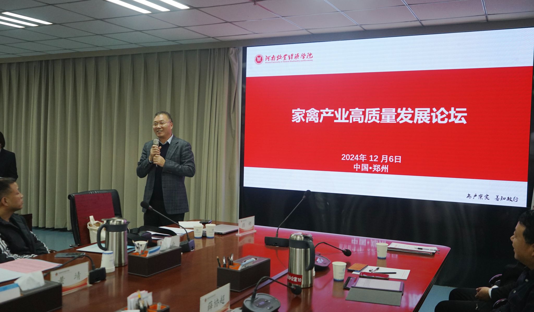 12月6日,龙子湖畔波光潋滟,层林尽染,完美体育官方网站校友会家禽行业校友联盟成立大会暨家禽产业高质量发展论坛在完美官网龙子湖校区举行。校长尹新明出席会议并致欢迎辞,副校长席磊主持会议。校友会、动物科技学院负责同志,各院校友工作负责人及50余名嘉宾、校友参会。