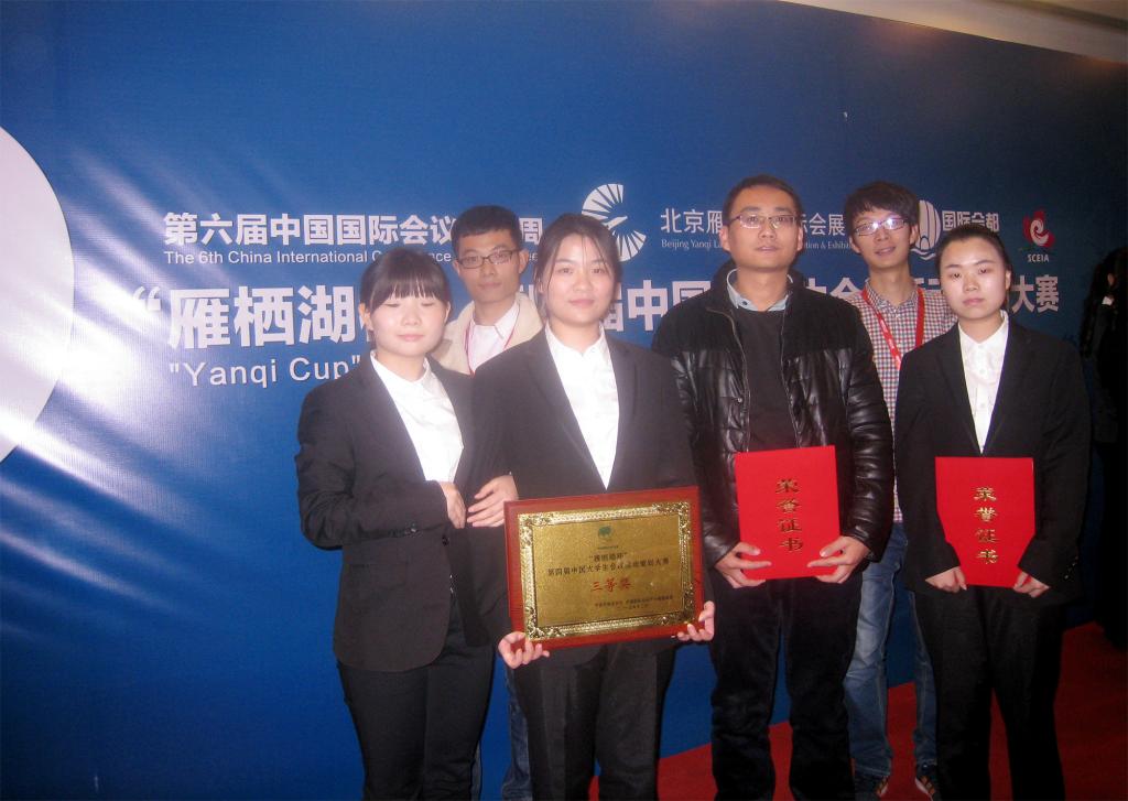 12月22日,由中国会展杂志和国际会展产业贸促会联合主办,北京界上文化发展有限公司承办的“雁栖湖杯”第四届中国大学生会议活动策划大赛”在国家会议中心举行。由完美官网应用英语专业14级和15级学生李梦杰、冯涛等6位同学参赛的项目《中国(北京)互联网云平台交流大会》夺得三等奖,完美官网成为河南省唯一一所获奖高校;姜小红和于利波两位老师获得优秀指导教师奖。