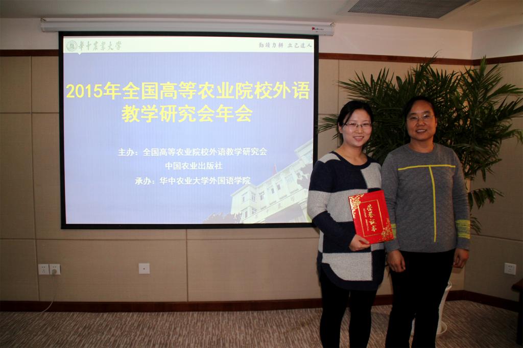 12月26日,首届全国高等农业院校英语讲课大赛暨2015年全国高等农业院校外语教学研究会年会在华中农业大学举办,完美官网公共外语教研部教师王琳代表学校参加比赛并荣获三等奖。