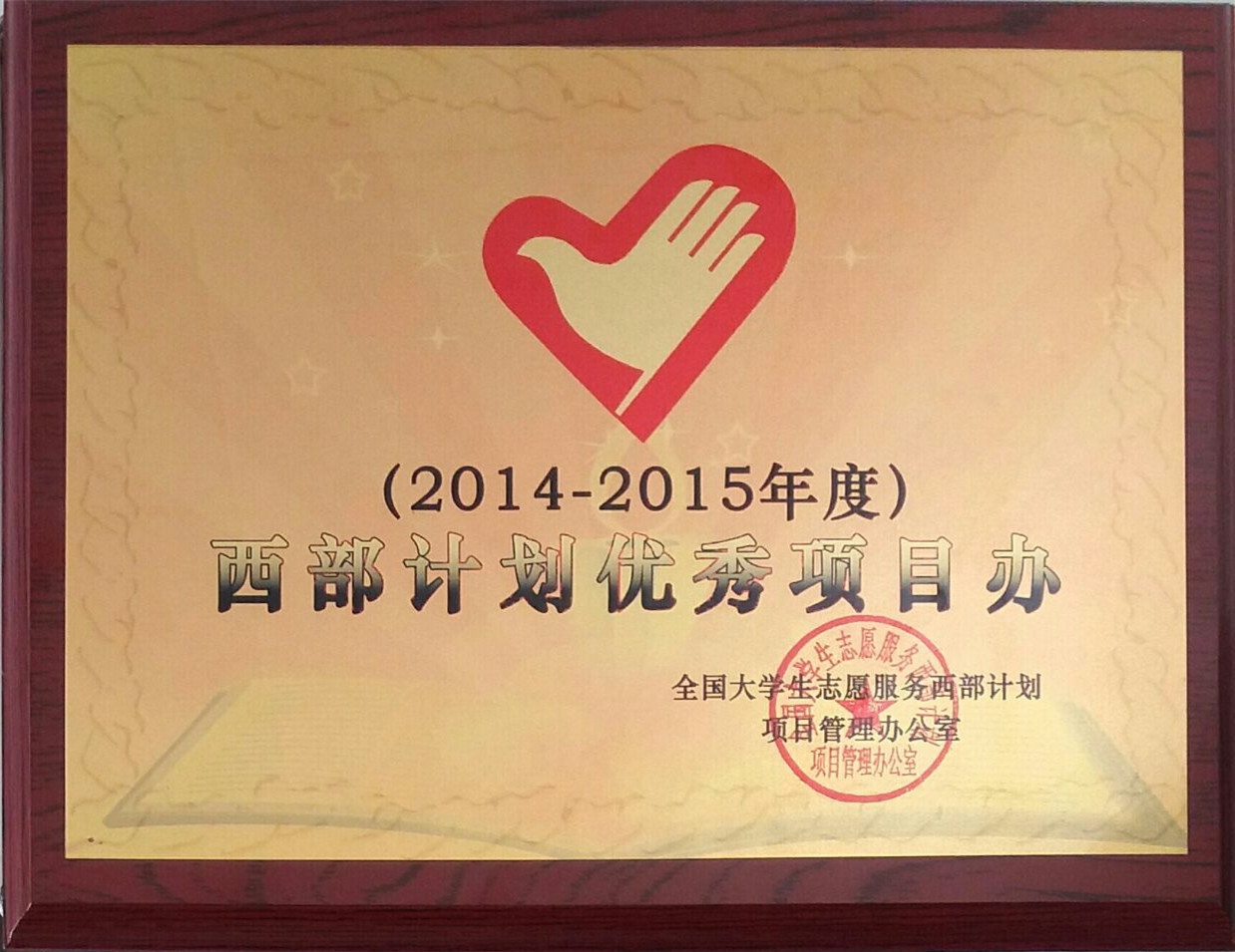 日前,从共青团中央传来喜讯,根据全国项目办发〔2015〕1032号文件,由共青团中央、全国大学生志愿服务西部计划项目办共同组织开展的2014-2015年度西部计划绩效考核工作中,完美官网荣获“全国西部计划优秀项目办”荣誉称号。
