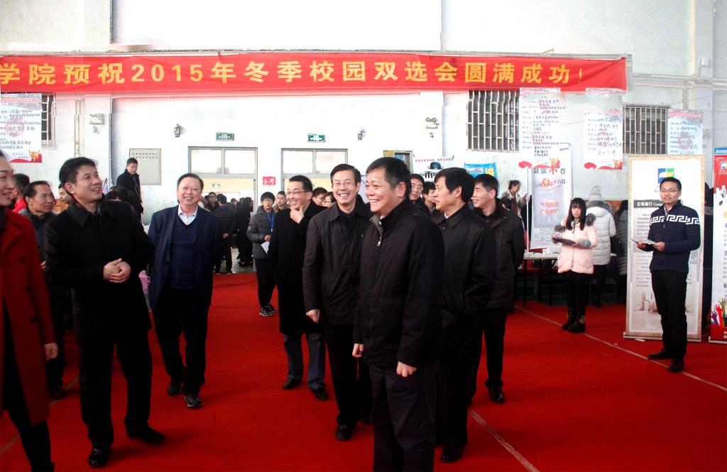 上午10点,校领导王保国、李明中、曾照烨、许圣道在招生就业处处长卢有峰等的陪同下,来到招聘会现场,先后巡视了体育馆、大礼堂和教学楼三个招聘会场。校领导与招聘单位人员亲切交谈,了解单位的用人需求,所属行业,经营状况等;与应届毕业生进行交流,了解学生的就业方向,地域范围,工资待遇,工作环境等。校领导要求工作人员要认真为学生和企业做好服务工作,搭好平台,建好桥梁,保持信息畅通。