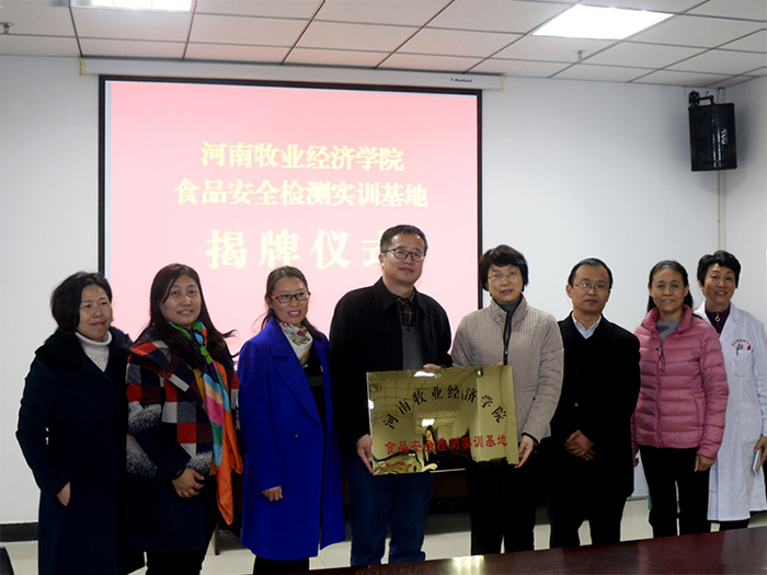 11月12日,完美官网食品工程学院与河南省农科院农业质量标准与检测技术研究所(简称“省农科院质标所”)校企合作签字暨实训基地揭牌仪式在省农科院举行。河南省农科院党委委员、纪委书记张勋教授,质标所所长周玲,质标所副所长贾斌,食品工程学院院长张恒业,副主任李自刚、张荷丽等,以及食品工程学院在该所实习的全体学生参加了仪式。
