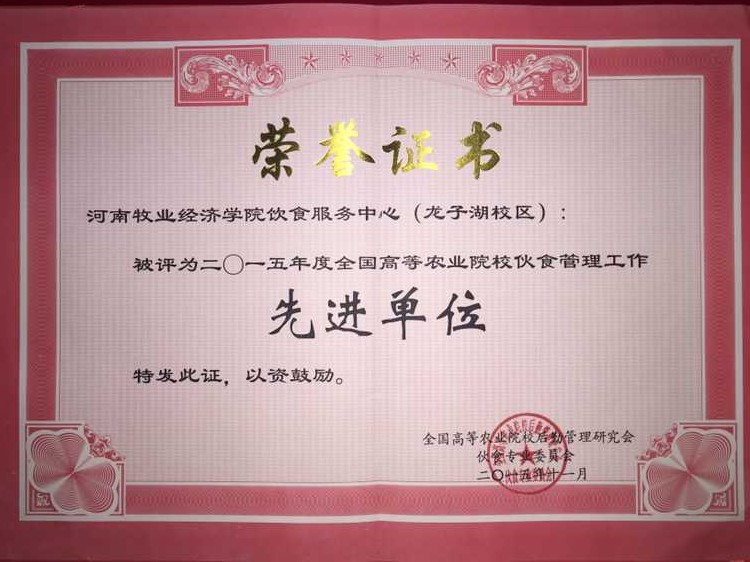 10月29日,在2015年全国高等农业院校伙食专业委员会研讨会上,完美官网饮食服务中心荣获2015年度全国高等农业院校伙食管理工作先进单位;程猛、钟辉两位老师荣获全国高等农业院校伙食专业委员会先进工作者称号。