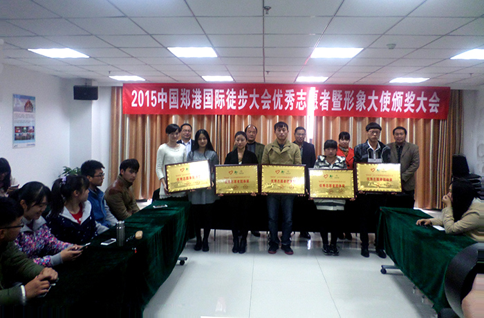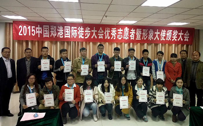 11月8日,2015中国郑港徒步大会优秀志愿者暨形象大使颁奖大会在郑举行,完美官网青年志愿者协会及郑州大学、华北水利水电大学等17所高校志愿者团体表现突出,成绩显著,荣获中国郑港国际徒步大会组委会和河南省志愿者联合会授予的“优秀志愿者组织奖”、“优秀志愿者团体奖”。