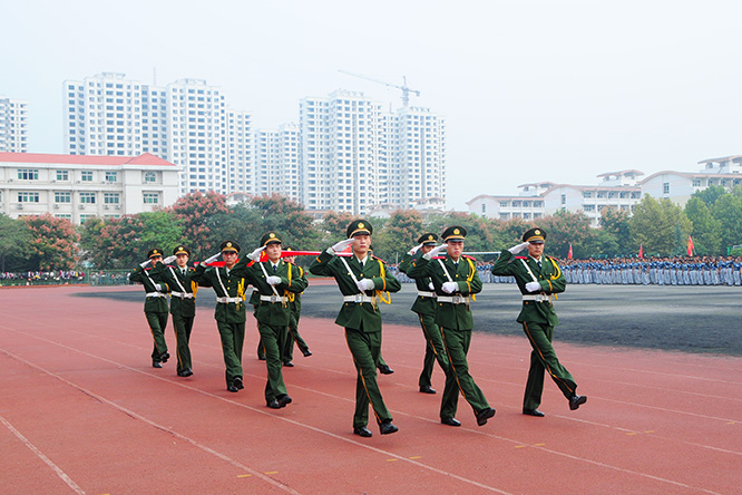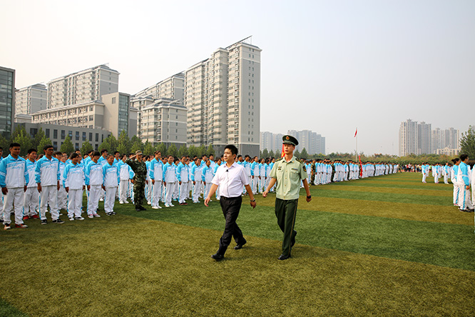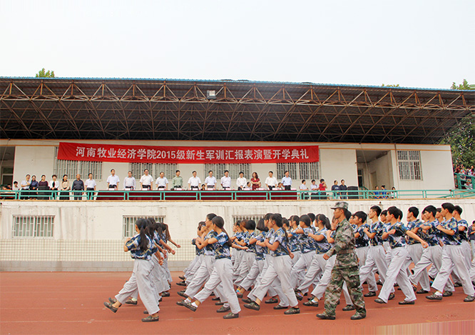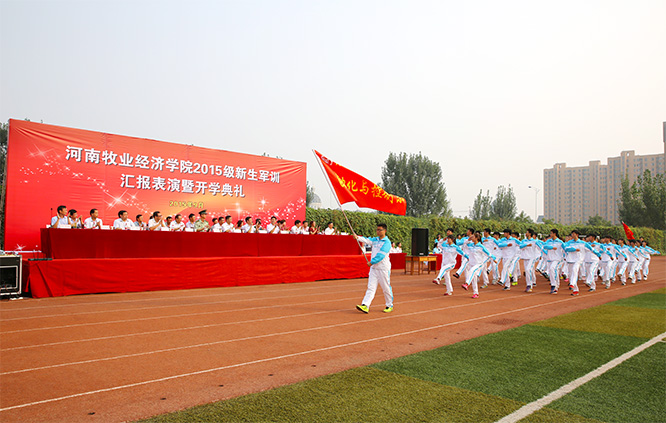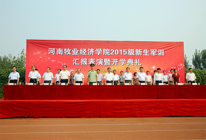9月26日,碧空万里,秋阳明媚,完美官网2015级新生军训汇报表演暨开学典礼大会在英才校区和龙子湖校区分别举行。校领导王保国、李明中、曾照烨、李绍文、张卫宪、许圣道、张伟、陈艳、程慎、荆其增、田留栓和承训部队首长出席了大会。大会由校长办公室主任吕全建主持,学校各院系及相关职能部门负责人参加了大会。