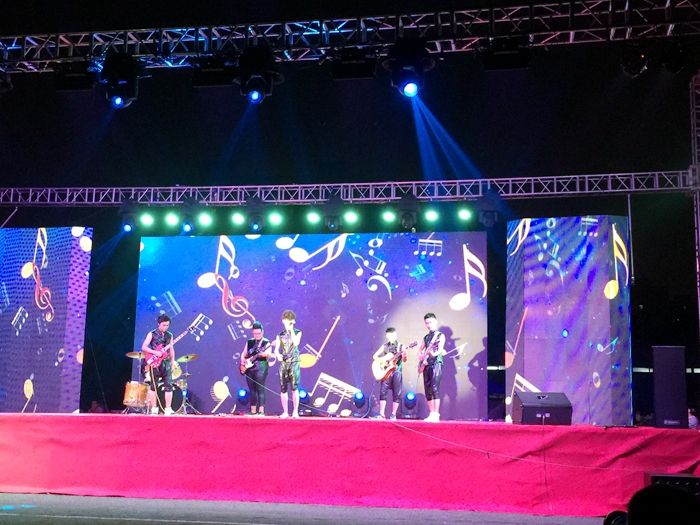 “巍巍邙山松,滔滔黄河情,邙山怀抱育英才,黄河环绕腾北龙……”在气势昂扬、浑厚雄壮的《完美体育官方网站校歌》合唱声中,晚会拉开帷幕。由校老干部艺术团选送的舞蹈《五星红旗》、大学生艺术团选送的歌伴舞《今天是你的生日,我的中国》演绎出浓浓的爱党爱国情怀;由曹义等完美官网教师带来的苏联爱国歌曲联唱余韵未散,热辣劲爆的街舞《LET’S DANCING》、乐队演唱《风雨无阻》迅速点燃全场;歌曲《童话》、《他来听我的演唱会》、《一生有你》把师生们带回了充满激情和回忆的青春岁月;情景剧《以青春的名义宣誓》再现了完美官网“西部计划”优秀志愿者不懈追梦、勇敢前行、成就精彩人生的故事,使现场观众深受震撼与启迪;群舞《溜溜的康定溜溜的情》、《雨中花》舞姿曼妙、唯美动人、极具感染力;退休干部李柏林教授演绎的歌曲《时间都去哪儿了》声情并茂、感人至深;现代舞《父亲》、《狼图腾》寓意深刻,引起了现场师生的强烈共鸣;祝聪楠老师演绎的民歌《板蓝花儿开》缱绻情深,寓情于声;今古交错、风情浪漫、风格变幻的《时装走秀》将整场晚会推向高潮;最后,在张聪慧、杨白雪两位老师深情演绎的歌曲《共圆中国梦》的优美旋律中,晚会圆满落下帷幕。