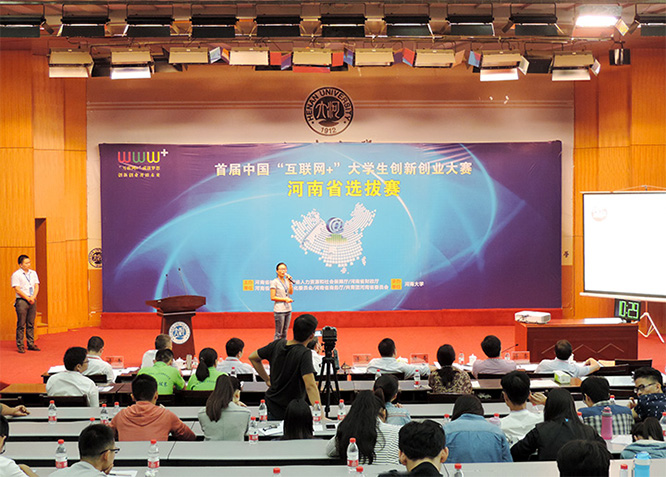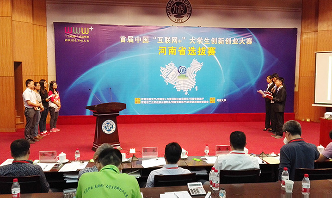 近日,由河南省教育厅、省人力资源和社会保障厅、省财政厅、省工业和信息化委员会、省商务厅、共青团河南省委员会六部门联合主办的首届中国“互联网+”大学生创新创业大赛河南省选拔赛在河南大学举行。本次大赛以“‘互联网+’成就梦想,创新创业开辟未来”为主题,共有从全省129所高校的2469支团队中脱颖而出的20个创意组团队和40个实践组团队分组参加比赛。