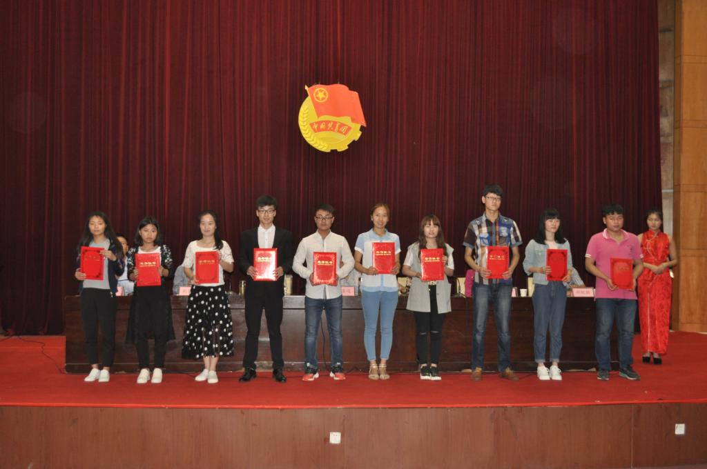 下午3:00,共青团工作表彰大会暨2016年“青年马克思主义者培养工程”大学生骨干培训班开班典礼在学术报告厅隆重举行,副校长许圣道出席会议并讲话。会上,对本期大学生骨干培训工作进行安排部署,对2015年度团内先进集体和个人、“向上向善好青年”进行表彰,“孝老爱亲好青年”及学员代表作了大会发言。宣传部、团委、学工部等部门负责人,各院(系)党总支副书记、团总支书记和辅导员老师,受表彰的先进集体、个人代表以及2016年大学生骨干培训班全体学员共计650人参加大会。