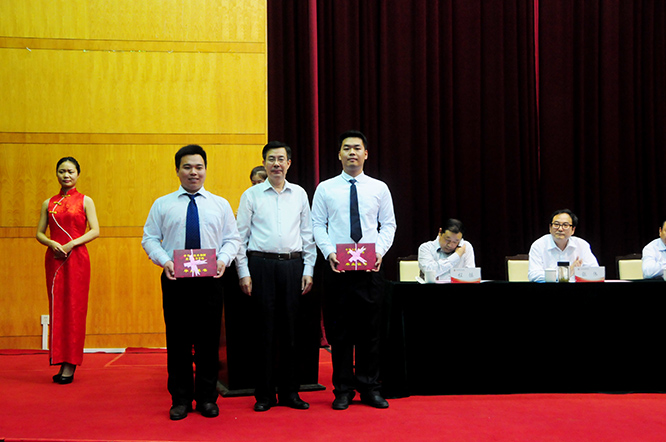 典礼上,副校长许圣道宣读了优秀毕业生表彰决定,校领导为优秀毕业生代表颁奖,李明中校长为优秀毕业生代表颁发毕业证书并合影留念。