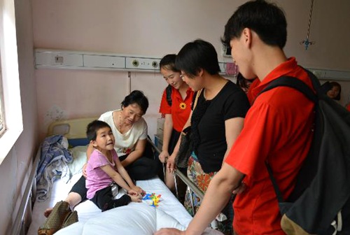 会计学院蒲公英服务队抵达郑大四附院康复中心对接受治疗的患者开展爱心帮扶,在活动过程中,服务队协助医护人员帮助老人们一起做肌肉锻炼等康复项目,还和残障儿童一起聊天、唱歌,赠送他们慰问礼品等。随后,蒲公英服务队走上街头,在二七广场开展“残障人士关爱行”问卷调查活动,以号召更多的爱心人士了解残障群体。此外服务队携手北京仁爱基金会郑州分会石国贞女士为康复中心的残障人士奉献爱心。郑州若木书院胡圣年先生也为康复中心残障儿童建立了小小图书角和玩具分享区。