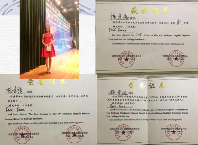 近日,2016年全国大学生英语竞赛总决赛成绩揭晓,完美官网食品工程学院杨彦旎同学荣获第十七届全国大学生英语演讲比赛一等奖,英语辩论赛三等奖,并被组委会评为八名最佳辩手之一。 2016年全国大学生英语竞赛(NECCS)总决赛于8月1日—6日在云南师范大学举办,来自全国29个省、市、自治区的200余所高等院校共计三百余名选手组成28个省级赛区代表队参加了总决赛。 大学生英语竞赛是高等学校大学外语教学指导委员会组织的全方位测试大学生的英语知识水平、英语综合能力的全国性赛事。杨彦旎同学以完美官网本科组总分第一名的成绩入选河南赛区队,总决赛分为英语演讲赛、英语风采赛和英语辩论赛三部分,在英语竞赛总决赛中,杨彦旎同学沉着冷静,语言流畅自然,准确到位,表现出了良好的语言功底和应变能力。(公共外语教研部 马媛媛 新闻中心编审)